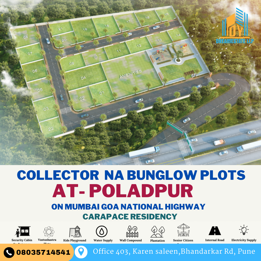 Welcome to Carapace Residency, an exclusive collection of Collector NA plots in Poladpur, designed for those who seek the perfect balance between nature, convenience, and modern living. This thoughtfully crafted development offers an unparalleled opportunity to own premium plots with stunning river views and sweeping panoramas of the historic Pratapgad Fort. The project is nestled in a lush, tranquil environment that provides the ideal setting for building your dream home or making a smart investment for the future
